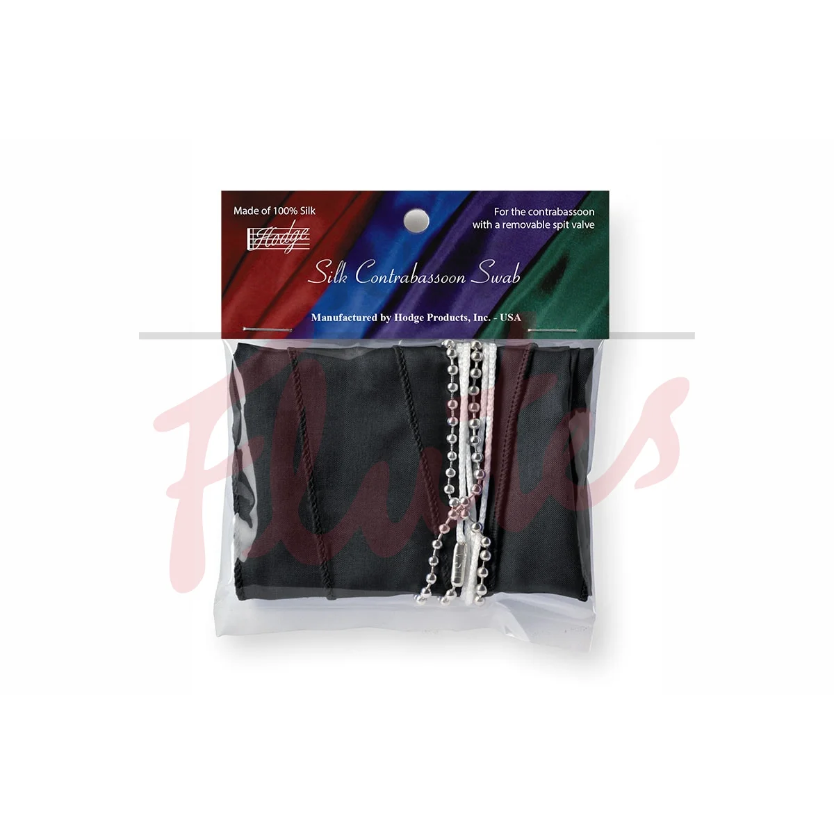 All Hodge silk swabs are made from 100% silk and come in performers black, royal blue, burgundy, forest green, deep purple, hot pink and silver. Silk is very absorbent, soaking up water in instruments better than any other natural material on the market, including both cotton and chamois. Most uniquely, silk is also very compressible, making it possible to pull through instruments with large variations in bore size. In addition, silk is lint free.