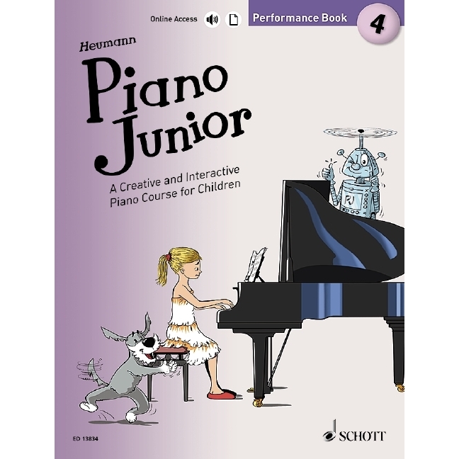 Piano Junior is a superb piano course for beginners. It's creative, it's interactive, it's colourful, it has its own website with additional online material and most importantly, it really works! Its characters, PJ the friendly robot and his sidekick Mozart the dog, motivate and encourage children throughout each level. The course is available as core Lesson Books, along with supplementary Theory, Duet and Performance Books at each stage.