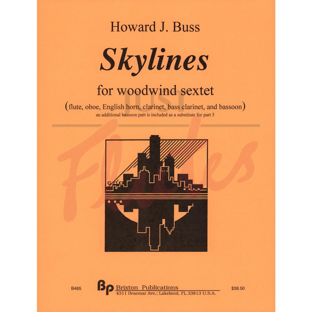 Skylines, version for woodwind sextet by Howard J. Buss, was originally composed for trumpet and piano during the Fall of 2002. This version for woodwind sextet was commissioned in 2019 by Victoria Ward Ltd. in memory of clarinetist David Marshall. It is scored for flute, oboe, English horn, clarinet, bass clarinet and bassoon. An additional bassoon part is provided as a substitute for part 5, the bass clarinet. Cast in two movements, it is a picturesque musical urban portrait. Skylines is loosely programmatic in that no specific city is depicted; rather, the composer captures, in a broad manner, the essence of the big city spectacle. The lyrical and majestic first movement, Panorama, suggests the expansive grandeur of cityscape. The second, Amid the Spires, is hugely influenced by jazz and captures the dynamic energy of life on the busy streets. Score and parts are included. (10’30”) Grade V. B485 $38.50
