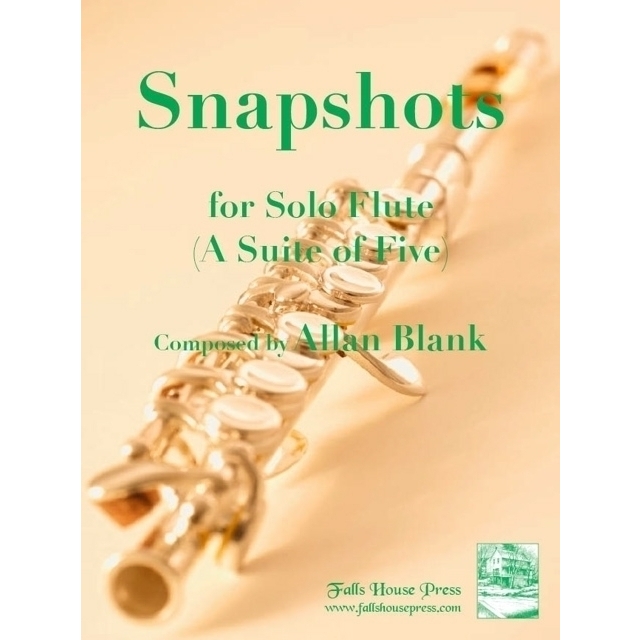 Snapshots, a suite of five diverse pieces for solo flute, opens with a fanfare-like welcome followed by a lively second movement. A slow and quiet meditative piece occupies the central position. The last two flirt with a waltz reference and finally, a tarantella reference.