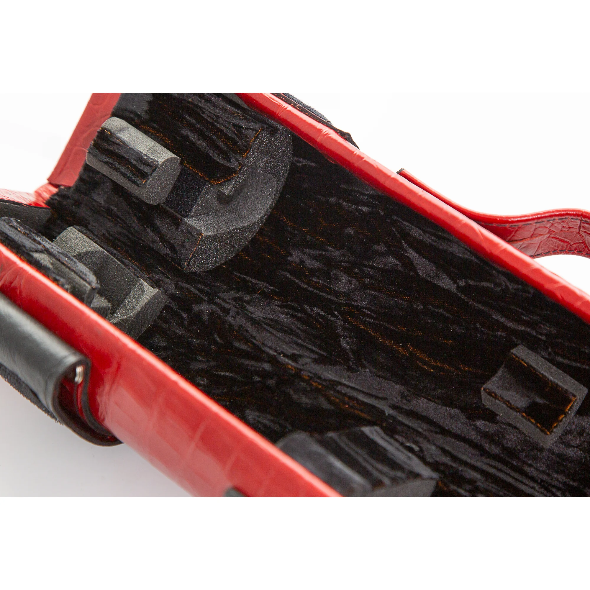 Wiseman Flute And Piccolo Case, Red Crocodile Leather With Black And Gold Lining